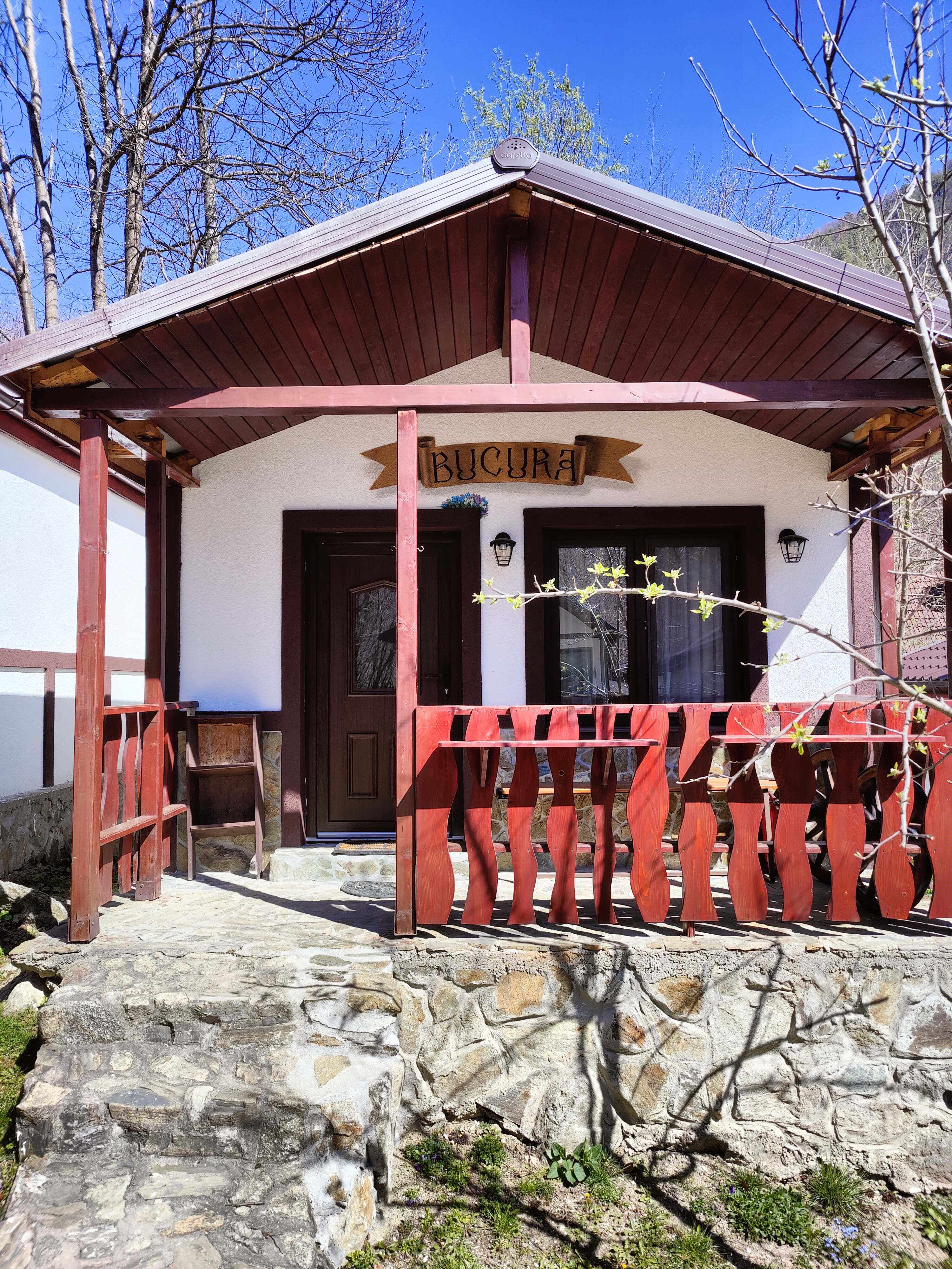 Terasa privată cu vedere spre curtea interioară este locul ideal pentru momente de relaxare, acompaniați de sunetul liniștitor al pârâului cascadant.